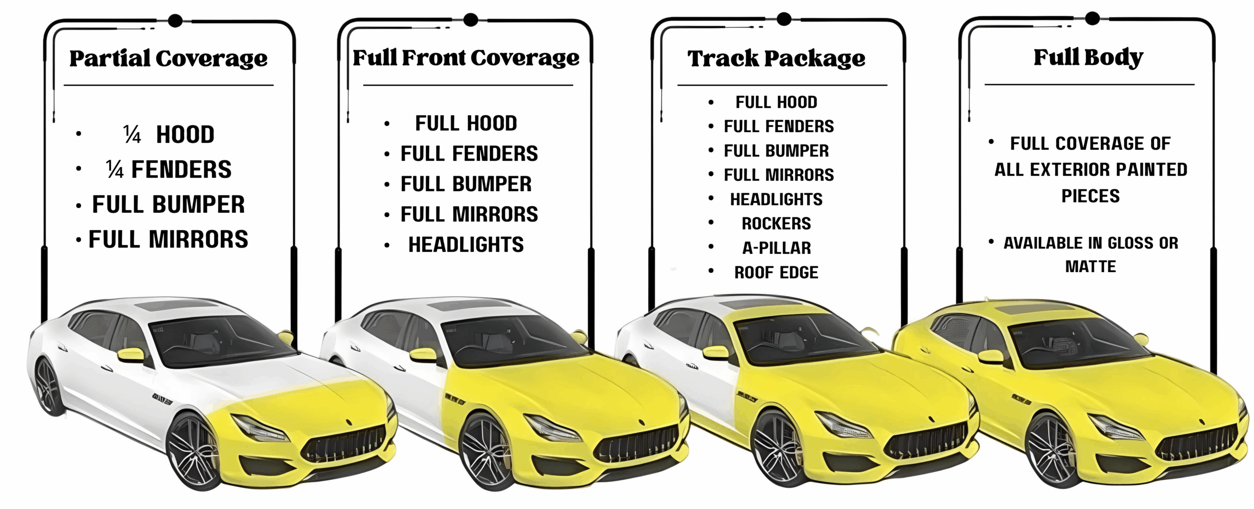 You can choose between any of our packages shown at the bottom of the page, or choose which panels you want covered. Your car will be cleaned before installation to get the paint as clean as possible.